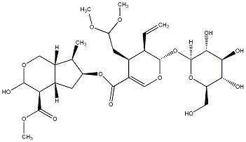 InChI=1S/C29H44O15/c1-6-13-14(8-20(37-3)38-4)17(11-41-28(13)44-29-24(33)23(32)22(31)19(9-30)43-29)25(34)42-18-7-15-16(12(18)2)10-40-27(36)21(15)26(35)39-5/h6,11-16,18-24,27-33,36H,1,7-10H2,2-5H3/t12-,13+,14+,15-,16+,18+,19-,21+,22+,23+,24-,27+,28+,29+/m1/s1 |