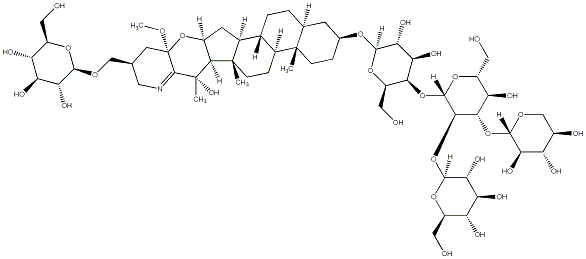 InChI=1S/C57H93NO29/c1-54-9-7-23(11-22(54)5-6-24-25(54)8-10-55(2)26(24)12-28-47(55)56(3,75)53-57(76-4,87-28)13-21(14-58-53)19-77-48-41(72)37(68)34(65)29(15-59)80-48)79-50-43(74)39(70)44(32(18-62)83-50)84-52-46(86-51-42(73)38(69)35(66)30(16-60)81-51)45(36(67)31(17-61)82-52)85-49-40(71)33(64)27(63)20-78-49/h21-52,59-75H,5-20H2,1-4H3/t21-,22-,23-,24+,25-,26-,27+,28-,29+,30+,31+,32+,33-,34+,35+,36+,37-,38-,39+,40+,41+,42+,43+,44-,45-,46+,47-,48+,49-,50+,51-,52-,54-,55-,56-,57+/m0/s1 |