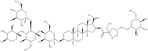 InChI=1S/C57H93NO30/c1-21(63)34-29(85-54(76)57(77-4)13-22(14-58-57)19-78-49-43(73)39(69)36(66)30(15-59)81-49)12-27-25-6-5-23-11-24(7-9-55(23,2)26(25)8-10-56(27,34)3)80-51-45(75)41(71)46(33(18-62)84-51)86-53-48(88-52-44(74)40(70)37(67)31(16-60)82-52)47(38(68)32(17-61)83-53)87-50-42(72)35(65)28(64)20-79-50/h22-53,58-62,64-75H,5-20H2,1-4H3/t22-,23-,24-,25+,26-,27-,28+,29-,30+,31+,32+,33+,34-,35-,36+,37+,38+,39-,40-,41+,42+,43+,44+,45+,46-,47-,48+,49+,50-,51+,52-,53-,55-,56+,57+/m0/s1 |