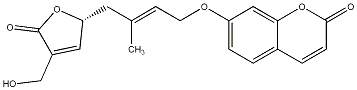 InChI=1S/C19H18O6/c1-12(8-16-9-14(11-20)19(22)24-16)6-7-23-15-4-2-13-3-5-18(21)25-17(13)10-15/h2-6,9-10,16,20H,7-8,11H2,1H3/b12-6+/t16-/m1/s1 |