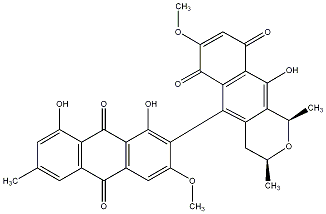 InChI=1S/C32H26O10/c1-11-6-15-22(17(33)7-11)31(38)24-16(28(15)35)9-19(40-4)26(32(24)39)23-14-8-12(2)42-13(3)21(14)30(37)25-18(34)10-20(41-5)29(36)27(23)25/h6-7,9-10,12-13,33,37,39H,8H2,1-5H3/t12-,13-/m1/s1 |