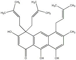 CC(C)=CCc1c(C)cc(O)c2c(O)c3c(cc12)C(CC=C(C)C)(CC=C(C)C)C(O)=CC3=O |