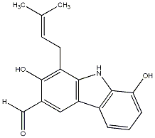 CC(C)=CCc1c(O)c(C=O)cc2c1[nH]c1c(O)cccc12 |