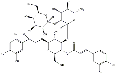 COC(CO[C@@H]1O[C@H](CO)[C@@H](OC(=O)/C=C/c2ccc(O)c(O)c2)[C@H](O[C@@H]2O[C@@H](C)[C@H](O)[C@@H](O)[C@H]2O[C@@H]2O[C@H](CO)[C@H](O)[C@H](O)[C@H]2O)[C@H]1O)c1ccc(O)c(O)c1 |