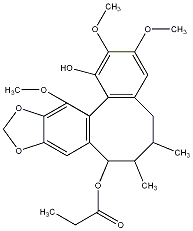 InChI=1S/C25H30O8/c1-7-18(26)33-22-13(3)12(2)8-14-9-16(28-4)23(29-5)21(27)19(14)20-15(22)10-17-24(25(20)30-6)32-11-31-17/h9-10,12-13,22,27H,7-8,11H2,1-6H3/t12-,13+,22-/m0/s1 |