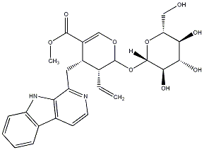 InChI=1S/C27H30N2O9/c1-3-13-16(10-19-21-15(8-9-28-19)14-6-4-5-7-18(14)29-21)17(25(34)35-2)12-36-26(13)38-27-24(33)23(32)22(31)20(11-30)37-27/h3-9,12-13,16,20,22-24,26-27,29-33H,1,10-11H2,2H3/t13-,16-,20+,22+,23-,24+,26+,27-/m0/s1 |