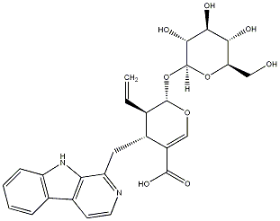 InChI=1S/C26H28N2O9/c1-2-12-15(9-18-20-14(7-8-27-18)13-5-3-4-6-17(13)28-20)16(24(33)34)11-35-25(12)37-26-23(32)22(31)21(30)19(10-29)36-26/h2-8,11-12,15,19,21-23,25-26,28-32H,1,9-10H2,(H,33,34)/t12-,15-,19-,21+,22+,23-,25-,26+/m1/s1 |