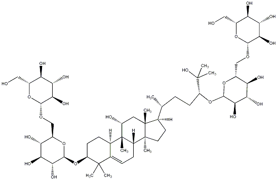 C[C@H](CC[C@@H](OC1O[C@H](CO[C@@H]2O[C@H](CO)[C@@H](O)[C@H](O)[C@H]2O)[C@@H](O)[C@H](O)[C@H]1O)C(C)(C)O)[C@H]1CC[C@@]2(C)[C@@H]3CC=C4[C@@H](CC[C@H](O[C@@H]5O[C@H](CO[C@@H]6O[C@H](CO)[C@@H](O)[C@H](O)[C@H]6O)[C@@H](O)[C@H](O)[C@H]5O)C4(C)C)[C@]3(C)[C@H](O)C[C@]12C |