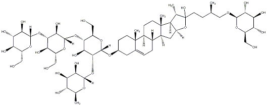 InChI=1S/C57H94O28/c1-21(20-75-50-42(69)40(67)36(63)30(16-58)78-50)8-13-57(74)22(2)34-29(85-57)15-28-26-7-6-24-14-25(9-11-55(24,4)27(26)10-12-56(28,34)5)77-54-49(84-51-43(70)39(66)35(62)23(3)76-51)45(72)47(33(19-61)81-54)82-53-46(73)48(38(65)32(18-60)80-53)83-52-44(71)41(68)37(64)31(17-59)79-52/h6,21-23,25-54,58-74H,7-20H2,1-5H3/t21-,22+,23+,25+,26-,27+,28+,29+,30-,31-,32-,33-,34+,35+,36-,37-,38-,39-,40+,41+,42-,43-,44-,45+,46-,47-,48+,49-,50-,51+,52+,53+,54+,55+,56+,57-/m1/s1 |