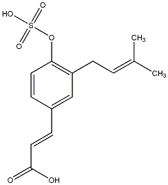 InChI=1S/C14H16O6S/c1-10(2)3-6-12-9-11(5-8-14(15)16)4-7-13(12)20-21(17,18)19/h3-5,7-9H,6H2,1-2H3,(H,15,16)(H,17,18,19)/b8-5+ |