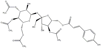 InChI=1S/C29H36O17/c1-14(31)39-11-20-24(41-15(2)32)26(43-17(4)34)23(37)28(44-20)46-29(13-30)27(38)25(42-16(3)33)21(45-29)12-40-22(36)10-7-18-5-8-19(35)9-6-18/h5-10,20-21,23-28,30,35,37-38H,11-13H2,1-4H3/b10-7+/t20-,21-,23-,24-,25-,26-,27+,28-,29+/m1/s1 |