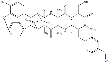 COc1ccc(CC2C(=O)NC(C)C(=O)N(C)C3Cc4ccc(cc4)Oc4cc(ccc4O)CC(C(=O)NC(C)C(=O)NC(CO)C(=O)N2C)N(C)C3=O)cc1 |