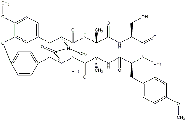 COc1ccc(C[C@H]2C(=O)N[C@@H](C)C(=O)N(C)[C@H]3Cc4ccc(cc4)Oc4cc(ccc4OC)C[C@@H](C(=O)N[C@H](C)C(=O)N[C@@H](CO)C(=O)N2C)N(C)C3=O)cc1 |