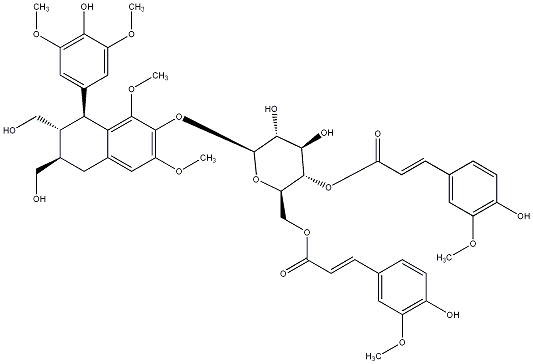 COc1cc(/C=C/C(=O)OC[C@H]2O[C@@H](Oc3c(OC)cc4c(c3OC)[C@H](c3cc(OC)c(O)c(OC)c3)[C@@H](CO)[C@H](CO)C4)[C@H](O)[C@@H](O)[C@@H]2OC(=O)/C=C/c2ccc(O)c(OC)c2)ccc1O |