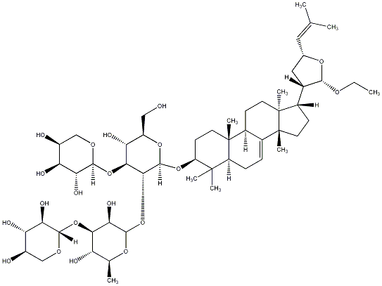 CCO[C@H]1O[C@@H](C=C(C)C)C[C@H]1[C@@H]1CC[C@]2(C)C3=CC[C@H]4C(C)(C)[C@@H](O[C@@H]5O[C@H](CO)[C@@H](O)[C@H](O[C@@H]6OC[C@H](O)[C@H](O)[C@H]6O)[C@H]5OC5O[C@@H](C)[C@H](O)[C@@H](O[C@@H]6OC[C@@H](O)[C@H](O)[C@H]6O)[C@H]5O)CC[C@]4(C)[C@H]3CC[C@@]12C |