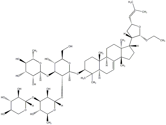 InChI=1S/C55H90O20/c1-11-66-47-28(21-27(70-47)20-24(2)3)29-14-18-55(10)31-12-13-34-52(6,7)35(16-17-53(34,8)30(31)15-19-54(29,55)9)72-51-46(45(39(61)33(22-56)71-51)74-49-42(64)40(62)36(58)25(4)68-49)75-50-43(65)44(37(59)26(5)69-50)73-48-41(63)38(60)32(57)23-67-48/h12,20,25-30,32-51,56-65H,11,13-19,21-23H2,1-10H3/t25-,26-,27-,28-,29-,30-,32+,33+,34-,35-,36-,37-,38-,39+,40+,41+,42+,43+,44+,45-,46+,47-,48-,49-,50-,51-,53+,54-,55+/m0/s1 |