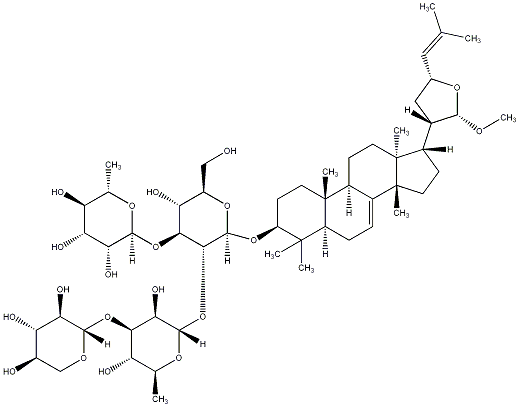 CO[C@H]1O[C@@H](C=C(C)C)C[C@H]1[C@@H]1CC[C@]2(C)C3=CC[C@H]4C(C)(C)[C@@H](O[C@@H]5O[C@H](CO)[C@@H](O)[C@H](O[C@@H]6O[C@@H](C)[C@H](O)[C@@H](O)[C@H]6O)[C@H]5O[C@@H]5O[C@@H](C)[C@H](O)[C@@H](O[C@@H]6OC[C@@H](O)[C@H](O)[C@H]6O)[C@H]5O)CC[C@]4(C)[C@H]3CC[C@@]12C |