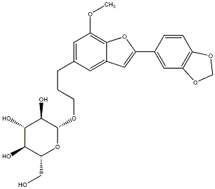 InChI=1S/C25H28O10/c1-30-19-8-13(3-2-6-31-25-23(29)22(28)21(27)20(11-26)35-25)7-15-10-17(34-24(15)19)14-4-5-16-18(9-14)33-12-32-16/h4-5,7-10,20-23,25-29H,2-3,6,11-12H2,1H3/t20-,21+,22+,23-,25-/m1/s1 |