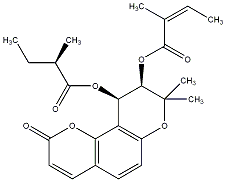 C/C=C(/C)C(=O)O[C@@H]1[C@H](OC(=O)[C@H](C)CC)c2c(ccc3ccc(=O)oc23)OC1(C)C |