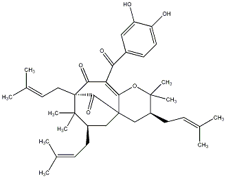 CC(C)=CC[C@H]1CC23C[C@@H](CC=C(C)C)C(C)(C)[C@@](CC=C(C)C)(C(=O)C(C(=O)c4ccc(O)c(O)c4)=C2OC1(C)C)C3=O |