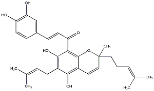 CC(C)=CCCC1(C)C=Cc2c(O)c(CC=C(C)C)c(O)c(C(=O)/C=C/c3ccc(O)c(O)c3)c2O1 |
