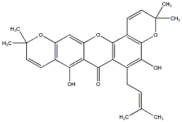 InChI=1S/C28H28O6/c1-14(2)7-8-16-20-24(31)21-19(13-18-15(22(21)29)9-11-27(3,4)33-18)32-25(20)17-10-12-28(5,6)34-26(17)23(16)30/h7,9-13,29-30H,8H2,1-6H3 |