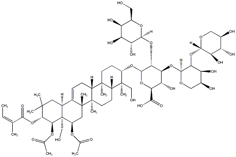 C/C=C(/C)C(=O)O[C@H]1[C@H](OC(C)=O)[C@]2(CO)[C@H](OC(C)=O)C[C@]3(C)C(=CC[C@@H]4[C@@]5(C)CC[C@H](OC6O[C@H](C(=O)O)[C@@H](O)[C@H](O[C@@H]7OC[C@H](O)[C@H](O)C7O[C@@H]7OC[C@@H](O)[C@H](O)[C@H]7O)[C@H]6O[C@@H]6O[C@H](CO)[C@H](O)[C@H](O)[C@H]6O)[C@@](C)(CO)[C@@H]5CC[C@]43C)[C@@H]2CC1(C)C |
