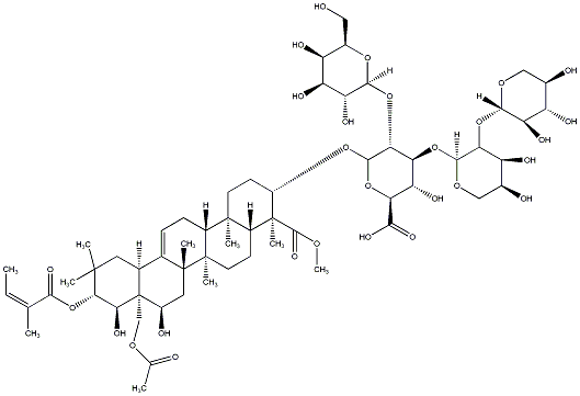 C/C=C(/C)C(=O)O[C@H]1[C@H](O)[C@]2(COC(C)=O)[C@H](O)C[C@]3(C)C(=CC[C@@H]4[C@@]5(C)CC[C@H](OC6O[C@H](C(=O)O)[C@@H](O)[C@H](O[C@@H]7OC[C@H](O)[C@H](O)C7O[C@@H]7OC[C@@H](O)[C@H](O)[C@H]7O)[C@H]6O[C@@H]6O[C@H](CO)[C@H](O)[C@H](O)[C@H]6O)[C@@](C)(C(=O)OC)[C@@H]5CC[C@]43C)[C@@H]2CC1(C)C |