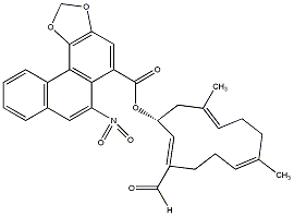 C/C1=C/CC/C(C=O)=C/[C@H](OC(=O)c2cc3c(c4c2c([N+](=O)[O-])cc2ccccc24)OCO3)C/C(C)=C/CC1 |