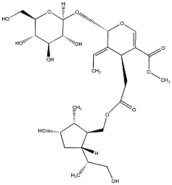 InChI=1S/C27H42O13/c1-5-14-16(7-21(31)37-10-17-13(3)19(30)6-15(17)12(2)8-28)18(25(35)36-4)11-38-26(14)40-27-24(34)23(33)22(32)20(9-29)39-27/h5,11-13,15-17,19-20,22-24,26-30,32-34H,6-10H2,1-4H3/b14-5+/t12-,13+,15-,16-,17-,19-,20+,22+,23-,24+,26-,27-/m0/s1 |