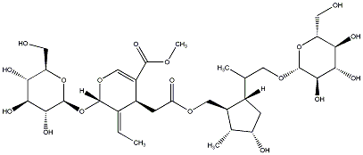 InChI=1S/C33H52O18/c1-5-15-17(19(30(44)45-4)12-48-31(15)51-33-29(43)27(41)25(39)22(9-35)50-33)7-23(37)46-11-18-14(3)20(36)6-16(18)13(2)10-47-32-28(42)26(40)24(38)21(8-34)49-32/h5,12-14,16-18,20-22,24-29,31-36,38-43H,6-11H2,1-4H3/b15-5+/t13-,14-,16+,17+,18+,20+,21-,22-,24-,25-,26+,27+,28-,29-,31+,32-,33+/m1/s1 |
