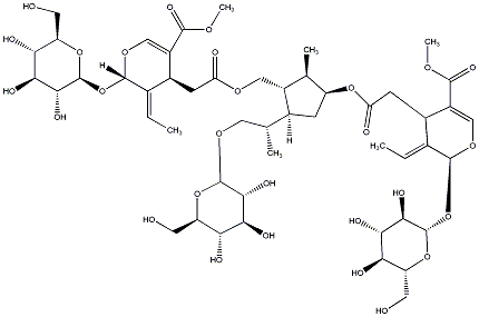 InChI=1S/C50H74O28/c1-7-21-24(27(44(65)67-5)17-71-46(21)77-49-42(63)39(60)36(57)31(13-52)75-49)10-33(54)69-16-26-20(4)29(9-23(26)19(3)15-70-48-41(62)38(59)35(56)30(12-51)74-48)73-34(55)11-25-22(8-2)47(72-18-28(25)45(66)68-6)78-50-43(64)40(61)37(58)32(14-53)76-50/h7-8,17-20,23-26,29-32,35-43,46-53,56-64H,9-16H2,1-6H3/b21-7+,22-8+/t19-,20-,23+,24+,25-,26+,29+,30-,31-,32-,35-,36-,37-,38+,39+,40+,41-,42-,43-,46+,47+,48-,49+,50+/m1/s1 |