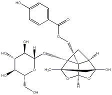 InChI=1S/C23H28O12/c1-20-8-22(30)13-6-23(20,33-18-16(28)15(27)14(26)12(7-24)32-18)21(13,19(34-20)35-22)9-31-17(29)10-2-4-11(25)5-3-10/h2-5,12-16,18-19,24-28,30H,6-9H2,1H3/t12-,13-,14-,15+,16-,18+,19-,20+,21+,22-,23+/m1/s1 |