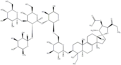 CCC(=O)[C@H]1O[C@@]2(CC[C@@]3(C)C4=C(CC[C@@]32C)[C@@]2(C)CC[C@H](O[C@@H]3O[C@H](CO[C@@H]5OC[C@H](O)[C@H](O)[C@H]5O[C@@H]5O[C@H](CO)[C@@H](O)[C@H](O[C@@H]6O[C@H](CO)[C@@H](O)[C@H](O)[C@H]6O)[C@H]5O[C@@H]5O[C@@H](C)[C@H](O)[C@@H](O)[C@H]5O)[C@@H](O)[C@H](O)[C@H]3O)C(C)(CO)[C@@H]2CC4)[C@H](C)[C@H]1OC(C)=O |