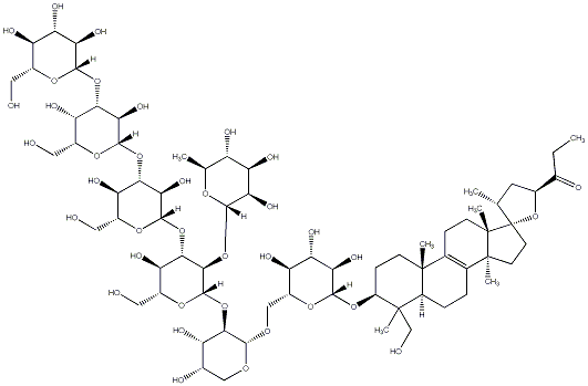 CCC(=O)[C@@H]1C[C@@H](C)[C@]2(CC[C@@]3(C)C4=C(CC[C@@]32C)[C@@]2(C)CC[C@H](O[C@@H]3O[C@H](CO[C@@H]5OC[C@H](O)[C@H](O)[C@H]5O[C@@H]5O[C@H](CO)[C@@H](O)[C@H](O[C@@H]6O[C@H](CO)[C@@H](O)[C@H](O[C@@H]7O[C@H](CO)[C@H](O)[C@H](O[C@@H]8O[C@H](CO)[C@@H](O)[C@H](O)[C@H]8O)[C@H]7O)[C@H]6O)[C@H]5O[C@@H]5O[C@@H](C)[C@H](O)[C@@H](O)[C@H]5O)[C@@H](O)[C@H](O)[C@H]3O)C(C)(CO)[C@@H]2CC4)O1 |