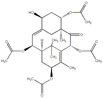InChI=1S/C28H38O10/c1-13-21(35-14(2)29)10-19-22(36-15(3)30)9-18-12-28(8,23(11-20(18)33)37-16(4)31)26(34)25(38-17(5)32)24(13)27(19,6)7/h9,19-23,25,33H,10-12H2,1-8H3/b18-9+/t19-,20-,21-,22+,23-,25+,28-/m0/s1 |