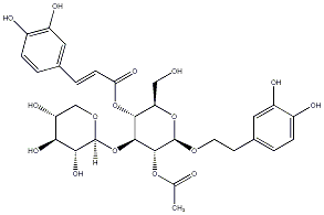 CC(=O)O[C@H]1[C@H](OCCc2ccc(O)c(O)c2)O[C@H](CO)[C@@H](OC(=O)/C=C/c2ccc(O)c(O)c2)[C@@H]1O[C@@H]1OC[C@@H](O)[C@H](O)[C@H]1O |