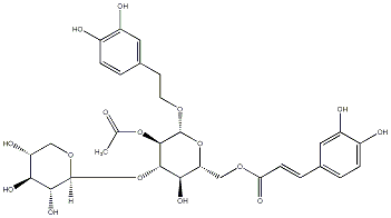 CC(=O)O[C@H]1[C@H](OCCc2ccc(O)c(O)c2)O[C@H](COC(=O)/C=C/c2ccc(O)c(O)c2)[C@@H](O)[C@@H]1O[C@@H]1OC[C@@H](O)[C@H](O)[C@H]1O |
