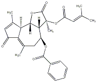 CC(C)=CC(=O)O[C@]1(C)C(=O)O[C@H]2[C@@H]3C(C)=CC(=O)C3=C(C)C[C@H](OC(=O)c3ccccc3)[C@H]21 |