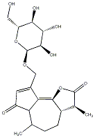InChI=1S/C21H28O9/c1-8-3-4-11-9(2)20(27)30-19(11)15-10(5-12(23)14(8)15)7-28-21-18(26)17(25)16(24)13(6-22)29-21/h5,8-9,11,13-14,16-18,21-22,24-26H,3-4,6-7H2,1-2H3/t8-,9+,11+,13-,14-,16-,17+,18-,21+/m1/s1 |