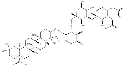 InChI=1S/C50H78O18/c1-24-34(55)39(67-41-36(57)38(65-26(3)53)30(22-62-41)64-25(2)52)37(58)42(63-24)68-40-35(56)29(54)21-61-43(40)66-33-13-14-46(6)31(47(33,7)23-51)12-15-49(9)32(46)11-10-27-28-20-45(4,5)16-18-50(28,44(59)60)19-17-48(27,49)8/h10,24,28-43,51,54-58H,11-23H2,1-9H3,(H,59,60)/t24-,28-,29+,30-,31+,32+,33-,34-,35+,36+,37+,38-,39+,40+,41-,42-,43+,46+,47-,48+,49+,50-/m0/s1 |