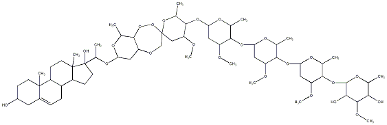 COC1CC(OC2C(C)OC3(COC4CC(OC(C)C5(O)CCC6C7CC=C8CC(O)CCC8(C)C7CCC65C)OC(C)C4OO3)CC2OC)OC(C)C1OC1CC(OC)C(OC2CC(OC)C(OC3OC(C)C(O)C(OC)C3O)C(C)O2)C(C)O1 |