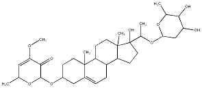InChI=1S/C34H52O9/c1-18-15-27(39-6)30(37)31(40-18)43-22-9-12-32(4)21(16-22)7-8-23-24(32)10-13-33(5)25(23)11-14-34(33,38)20(3)42-28-17-26(35)29(36)19(2)41-28/h7,15,18-20,22-26,28-29,31,35-36,38H,8-14,16-17H2,1-6H3/t18-,19-,20+,22-,23+,24-,25-,26-,28+,29+,31-,32-,33-,34-/m0/s1 |