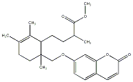 COC(=O)C(C)CCC1C(C)=C(C)CCC1(C)COc1ccc2ccc(=O)oc2c1 |