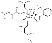 InChI=1S/C40H50O5/c1-10-26(4)23-27(5)16-19-38-24-32-31(22-25(2)3)39(34(38)43,20-17-28(6)29(7)18-21-41)36(45)40(35(38)44,37(32,8)9)33(42)30-14-12-11-13-15-30/h11-19,21-22,26-27,31-32H,10,20,23-24H2,1-9H3/b19-16+,28-17+,29-18+/t26-,27+,31+,32-,38+,39-,40+/m1/s1 |