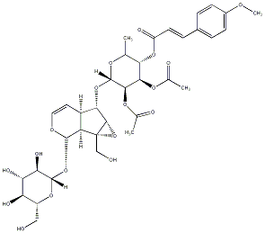 InChI=1S/C35H44O18/c1-15-27(50-22(40)10-7-18-5-8-19(44-4)9-6-18)29(47-16(2)38)30(48-17(3)39)34(46-15)51-28-20-11-12-45-32(23(20)35(14-37)31(28)53-35)52-33-26(43)25(42)24(41)21(13-36)49-33/h5-12,15,20-21,23-34,36-37,41-43H,13-14H2,1-4H3/b10-7+/t15-,20+,21-,23-,24+,25+,26-,27+,28+,29-,30-,31+,32-,33+,34+,35-/m1/s1 |