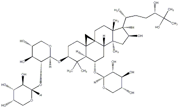 InChI=1S/C45H76O17/c1-20(8-9-27(50)41(4,5)56)29-21(46)15-43(7)26-14-25(60-37-33(54)30(51)22(47)16-57-37)36-40(2,3)28(10-11-45(36)19-44(26,45)13-12-42(29,43)6)61-39-35(32(53)24(49)18-59-39)62-38-34(55)31(52)23(48)17-58-38/h20-39,46-56H,8-19H2,1-7H3/t20-,21+,22-,23+,24-,25+,26+,27+,28+,29+,30+,31+,32+,33-,34-,35-,36+,37+,38+,39+,42-,43+,44+,45-/m1/s1 |
