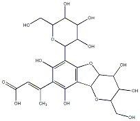 InChI=1S/C22H28O14/c1-5(2-8(25)26)9-14(29)10(20-18(33)16(31)12(27)6(3-23)34-20)19-11(15(9)30)21-22(36-19)17(32)13(28)7(4-24)35-21/h2,6-7,12-13,16-18,20-24,27-33H,3-4H2,1H3,(H,25,26)/b5-2+/t6-,7+,12+,13+,16+,17+,18-,20+,21-,22-/m0/s1 |