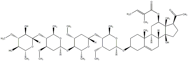 InChI=1S/C54H86O18/c1-14-26(2)50(58)69-40-22-36-35(54(59)20-18-34(27(3)55)53(40,54)9)16-15-32-21-33(17-19-52(32,36)8)68-41-23-37(60-10)46(29(5)64-41)70-42-24-38(61-11)47(30(6)65-42)71-43-25-39(62-12)48(31(7)66-43)72-51-45(57)49(63-13)44(56)28(4)67-51/h14-15,28-31,33-49,51,56-57,59H,16-25H2,1-13H3/b26-14+/t28-,29-,30-,31-,33+,34-,35-,36+,37+,38-,39-,40-,41+,42+,43+,44-,45-,46-,47-,48-,49+,51+,52+,53+,54+/m1/s1 |