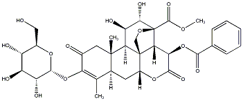 COC(=O)[C@@]12OC[C@]34[C@H]([C@@H](O)[C@@H]1O)[C@@]1(C)CC(=O)C(O[C@H]5O[C@H](CO)[C@@H](O)[C@H](O)[C@H]5O)=C(C)[C@@H]1C[C@H]3OC(=O)[C@H](OC(=O)c1ccccc1)[C@@H]24 |